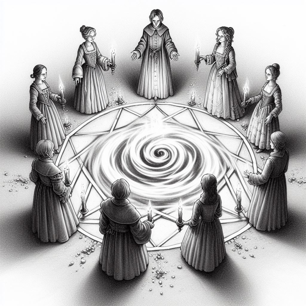 De heksen kring die het magische huis maakt in een andere dimensie.